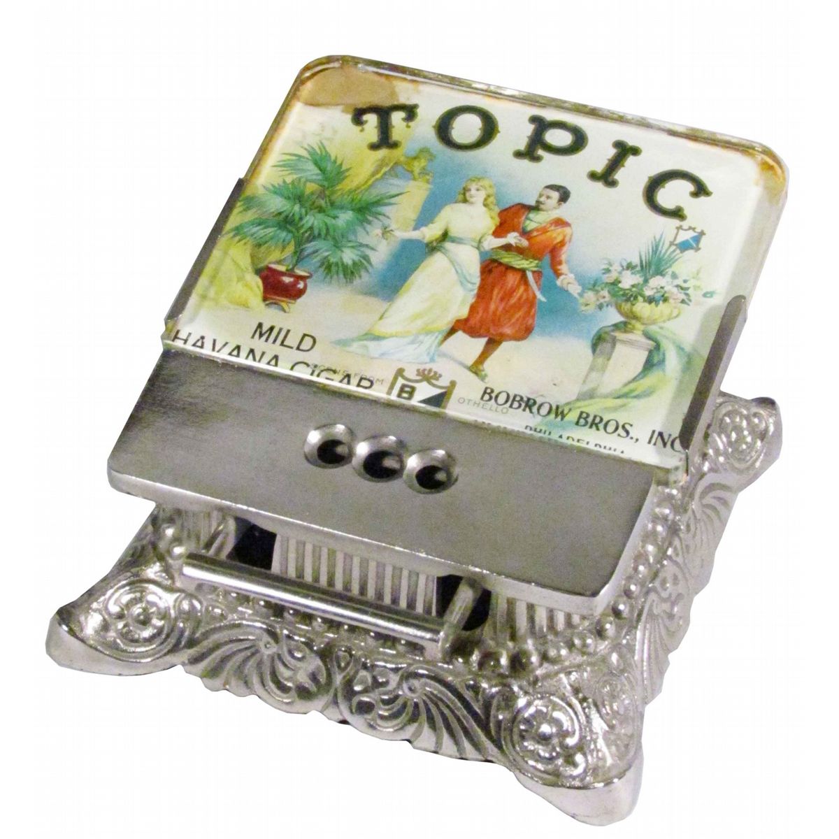Topic Havana Cigar Tip Cutter. Bobrow Bros. Inc. Phila. Cast iron. Professionally restored with original label. 6 X 3 1/2 X 6 inches.