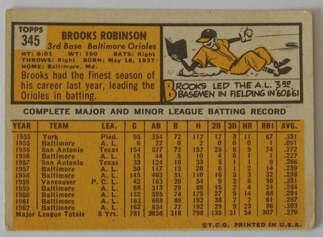 Topps 1963 Baltimore Orioles Brooks Robinson # 345 Topps 1963 Baltimore Orioles Brooks Robinson # 345 Baseball Card