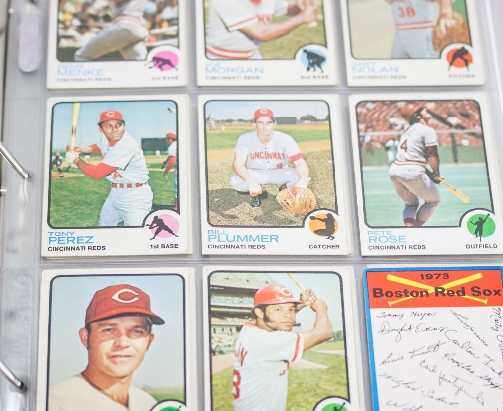 Topps baseball cards. From 1973. In collector's folder. Contains 682 cards. 29 x 7 x 29 cm, 2855g.