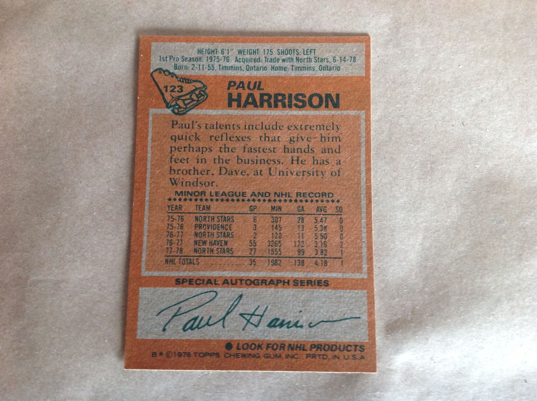1977/78 Special Autograph Series Hockey Card * Paul Harrison - Toronto Maple Leafs