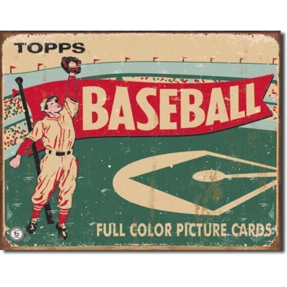 Topps Baseball Cards vintage-style metal pub bar, game room, man cave sign. 12 1/2" X 16" with pre-drilled holes for mounting.Â