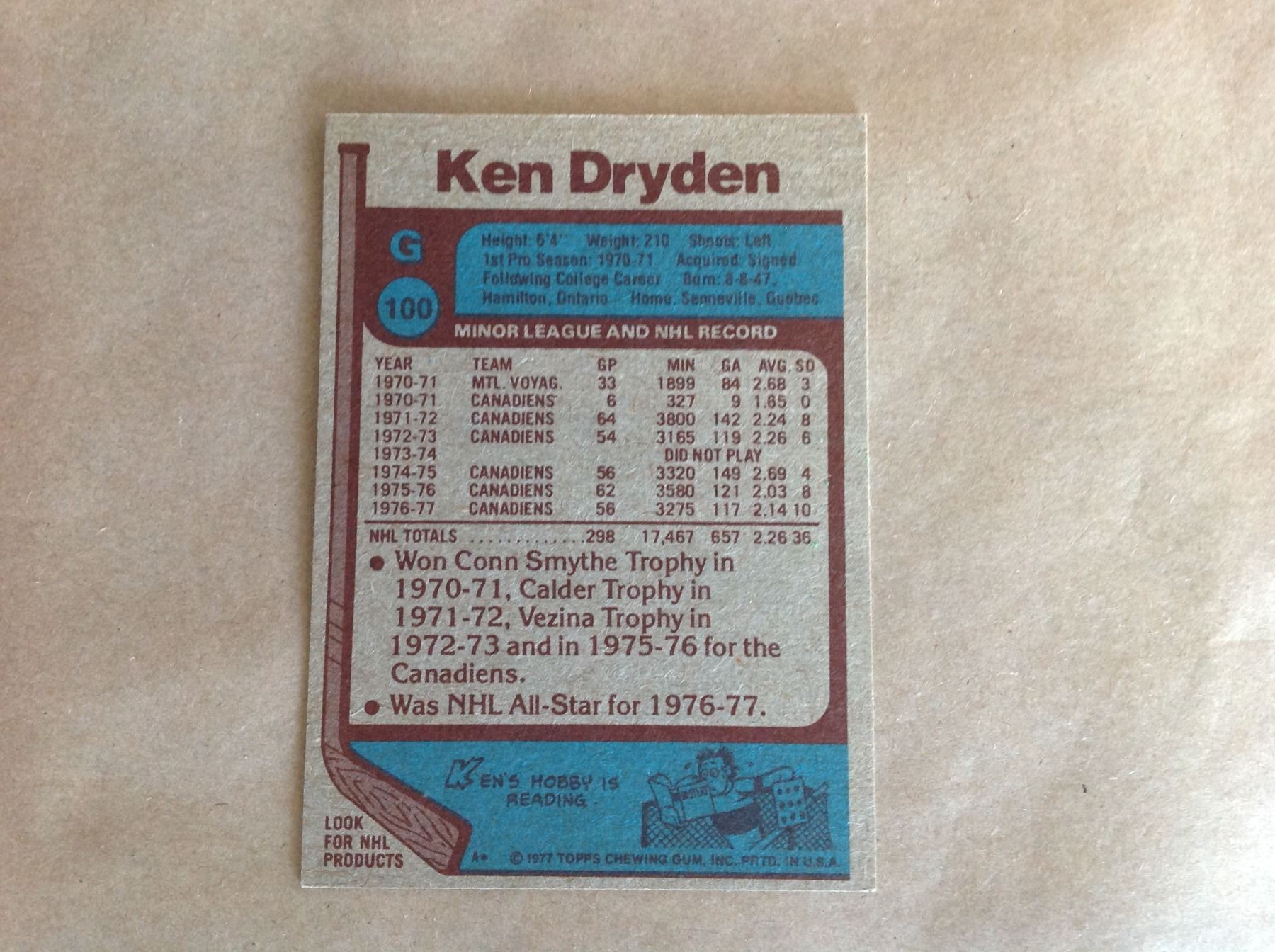 1976/77 NHL First Team All-Star Hockey Card * Ken Dryden *Montreal Canadiens Goalie