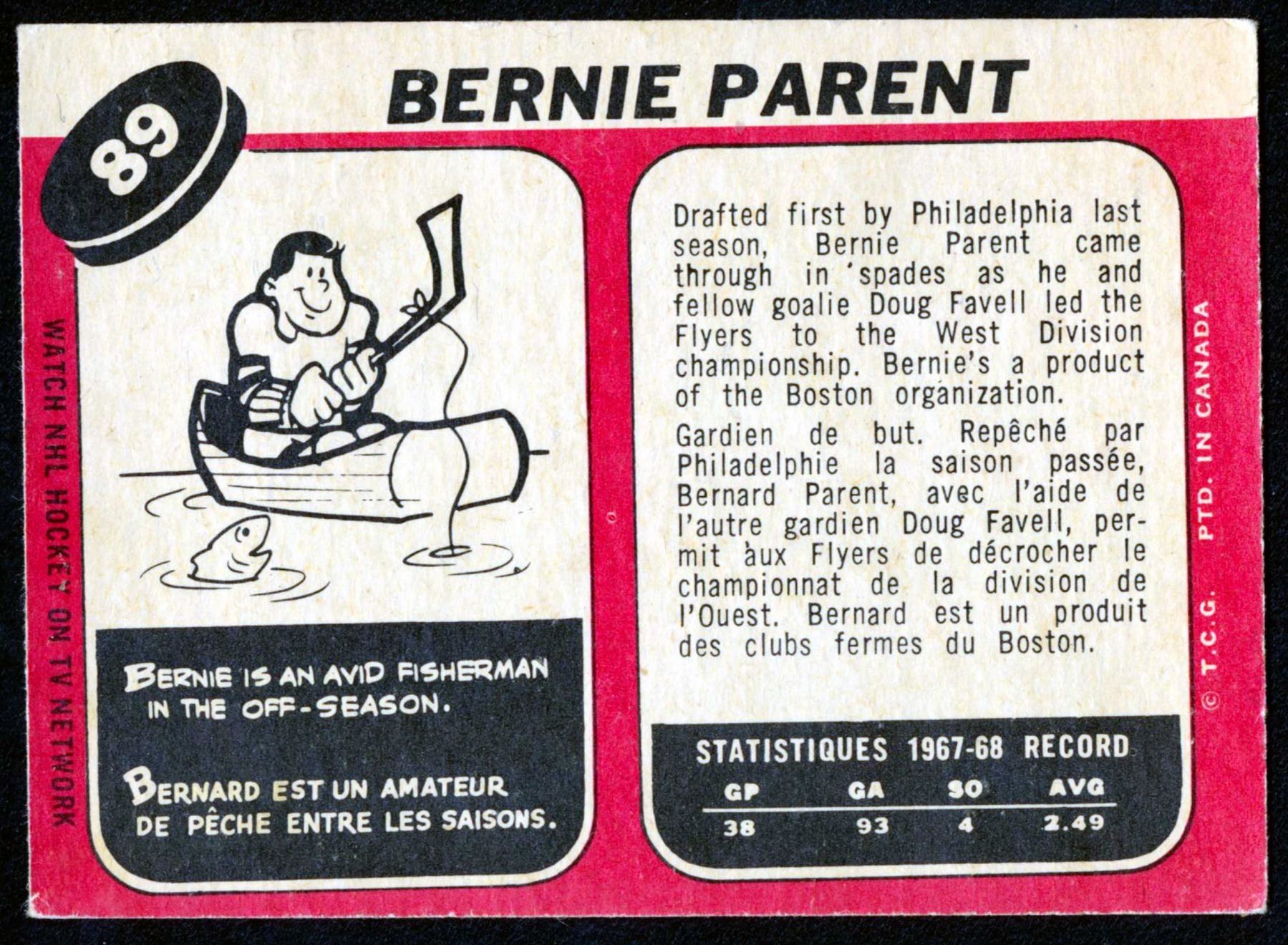 Topps card from Bernie Parent #1 (1968-69) Card #89.