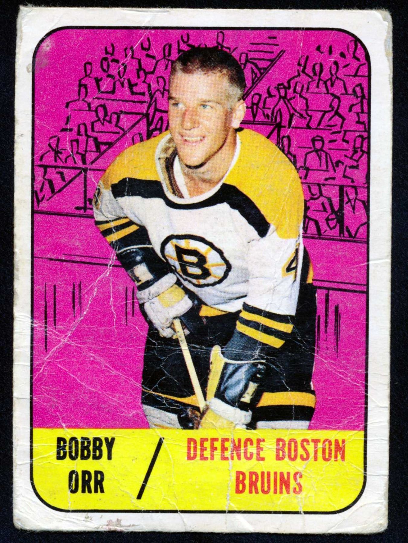 Bobby Orr #4 , with the Boston Bruins (1967-68), Topps company card #92.
