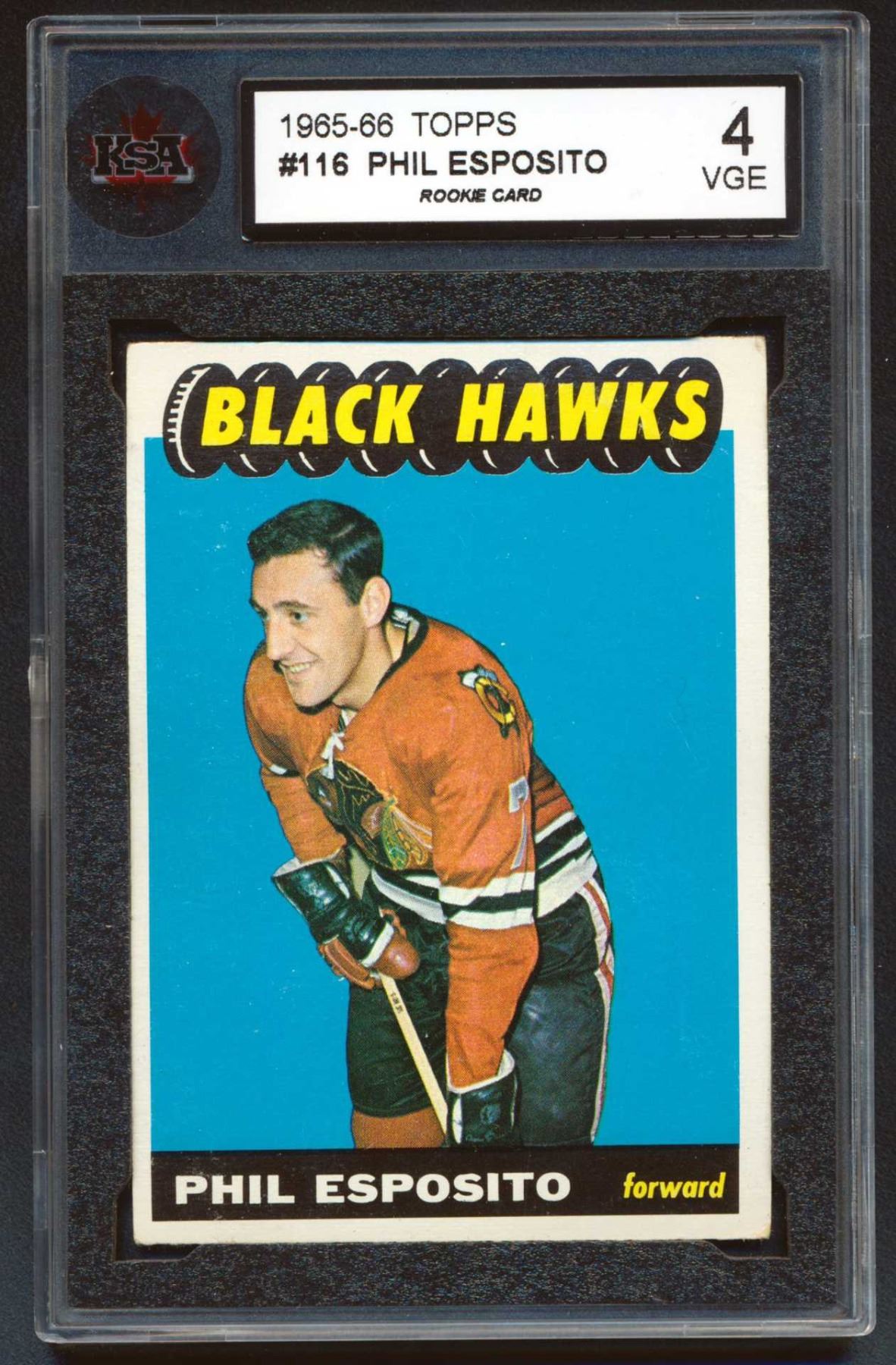 Topps card from Phil Esposito #7 rookie card (1965-66) KSA rank: 4 VGE Card #116.