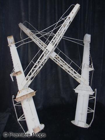 Tora! Tora! Tora! (1970) - From the classic film about the attack on Pearl Harbor, two cranes from the miniature of the battleship USS West Virginia. One is mislabeled "ARZ". A highly detailed metal large scale miniature was constructed. 34" x 35" x 11" each. This item is oversized and will require additional shipping costs. Please email for shipping rates prior to bidding.