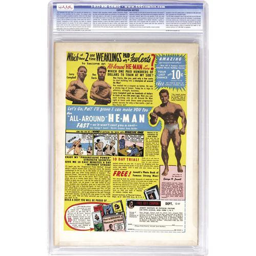 48C. COMICS – Comic books sold referencing a third-party grading service are sold "as is" without any express or implied warranty. Certain warranties may be available from the grading services and the Bidder is referred to them for further details: Comics Guaranty Corporation (CGC), P.O. Box 4738, Sarasota, FL 34230. Subject to sections 57 and 58, bidders who intend to challenge authenticity or provenance of a lot must notify Auctioneer in writing within thirty (30) days of the Auction's conclusion. Auctioneer's maximum liability shall not exceed the high bid on that lot, which bid shall be deemed for all purposes the value of the lot. In the event Auctioneer cannot deliver the lot or subsequently it is established that the lot lacks title, provenance, authenticity, or other transfer or condition issue is claimed, Auctioneer's liability shall be limited to recission of sale and refund of purchase price. After one year has elapsed, Auctioneer's maximum liability shall be limited to any commissions and fees Auctioneer earned on that lot.