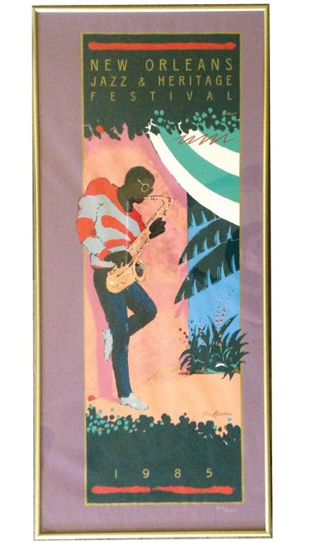 Ca. 1985, Signed limited edition print (#2678/12500) from the New Orleans Jazz and Heritage Festival. 32" x 12" (36" x 16" framed)