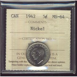 1788 - 1942 5¢ Tombac, 1953 SF, 1963 MS64, 1944, 1961, 1967 MS63, 1959, 1993 MS62 & 1962, 1964 MS60. Lot oThe Canadian Numismatic Company