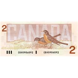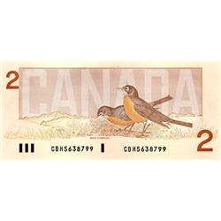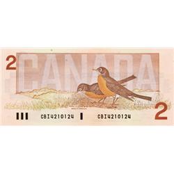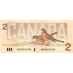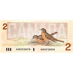 BANK OF CANADA. $2.00. 1986 Issue. BC-55a. Crow-Bouey. No. AUN4351845, No. AUK4725578. Both Choice Unc. Both scarcer prefixes.