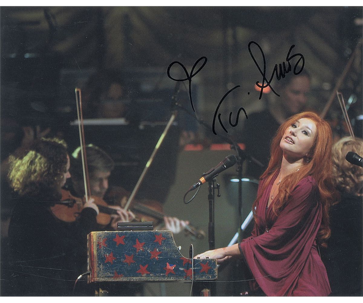 Color satin-finish 10 x 8 photo of Amos playing the keyboard in concert, signed in black felt tip. In fine condition. Originally obtained by in-person specialist Mike Wehrmann.