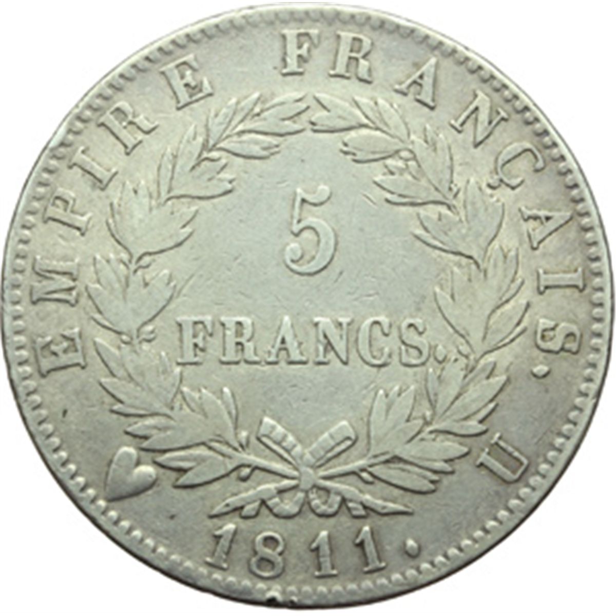 Monete e Medaglie di Zecche Italiane. Torino. Napoleone (1804-1814). 5 franchi 1811 T. Pag. 32. Mont. 37. AG. g. 24.81 R. BB.