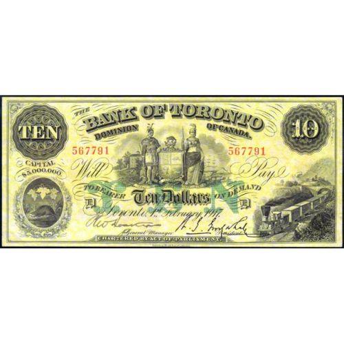 The Bank of Toronto Ten Dollars 1917, Manuscript Signature, CH 715-22-36 Serial Number 567791 D, EF. A nicely original note with a central fold and a couple of light counting bends