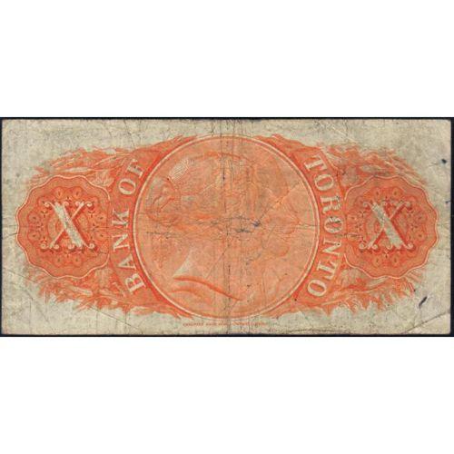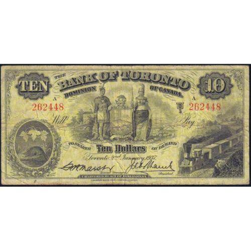 The Bank of Toronto Ten Dollars 1937, Marsh-Lamb, CH 715-24-12 Serial Number 262448 A, PMG Fine 12. Some small ink marks on the back