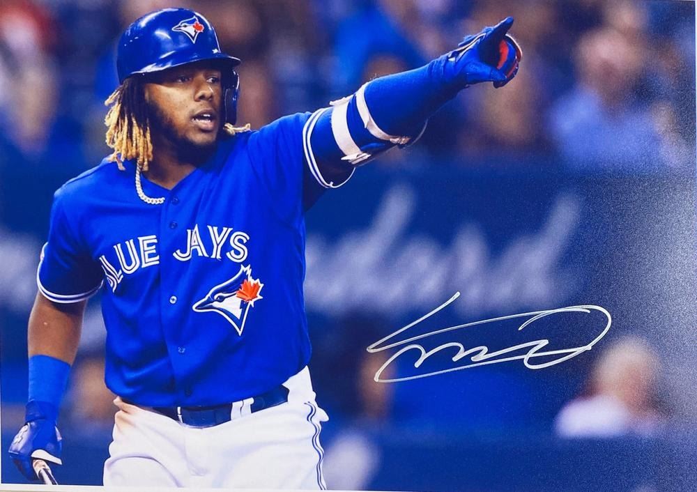 Toronto Blue Jays Vladimir Guerrero Jr. facsimile facsimile signed photo. 8x10 inches. This item is a reprint of an original autograph