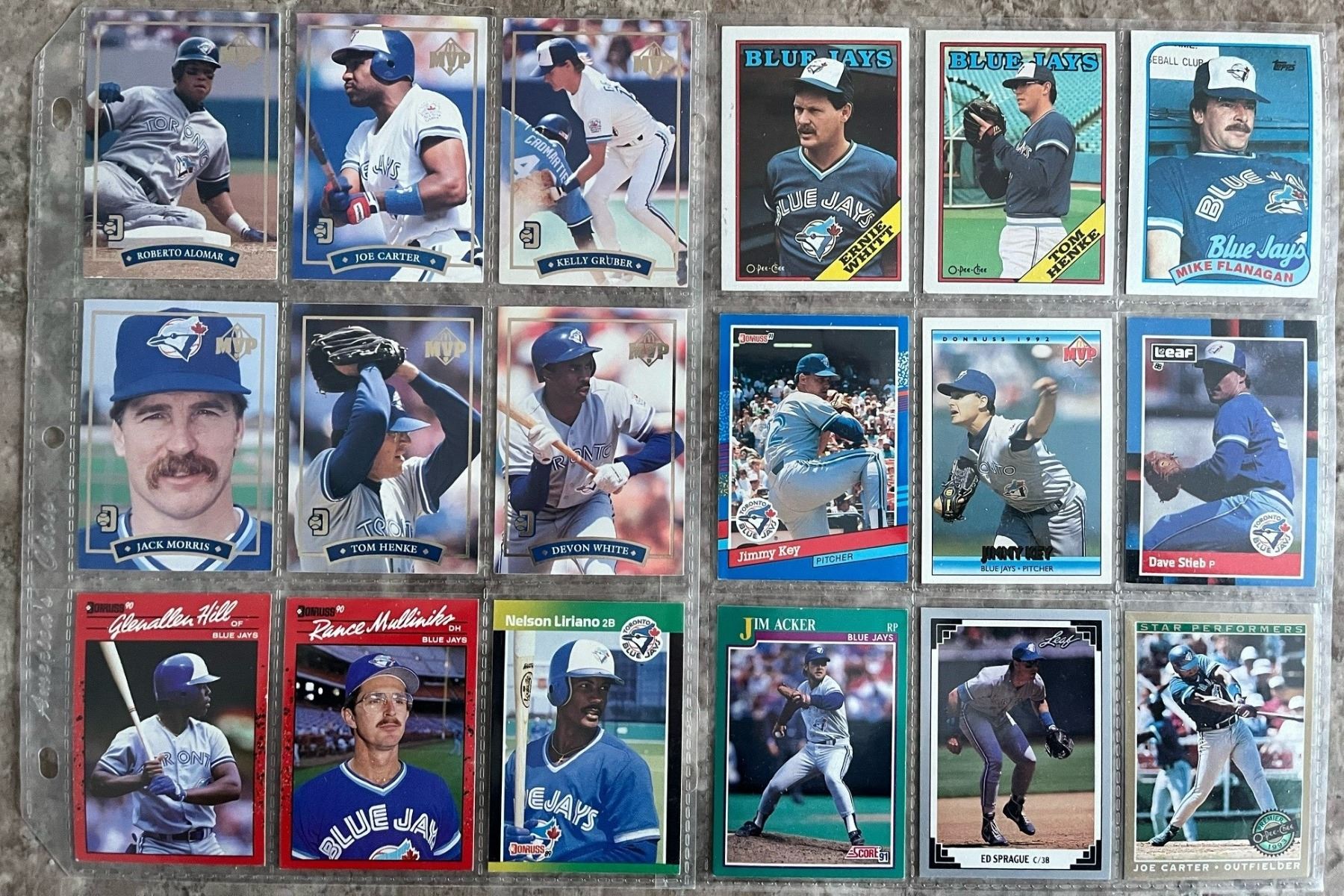 Toronto Blue Jays mixed years lot of 18 different baseball cards. Dave Stieb, Tom Henke, Joe Carter.