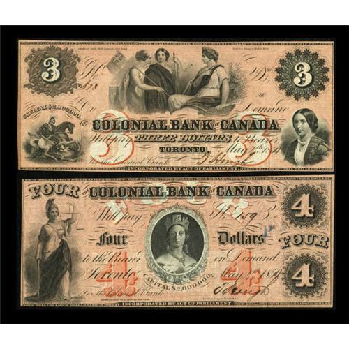 Toronto, CW- The Colonial Bank of Canada $3, $4