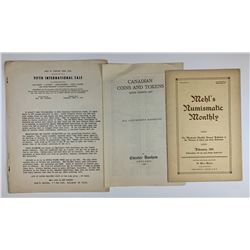 Three interesting and early US publications. Mehl's Numismatic Monthly dated February, 1911; Canadian Coins and Tokens Quick Finding List by Che...