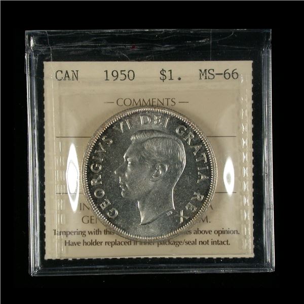 One Dollar 1950, ICCS MS-66 with lustrous satin fields and even light golden toning. A choice example for the date!