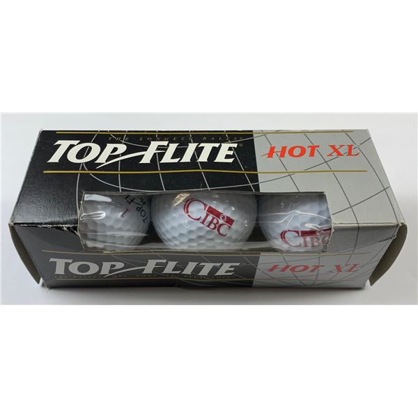 One package containing 3 balls of Top Flite Hot XL golf balls with CIBC Logo "Fore!". CIBC Memorabilia - From the personal collection of D...