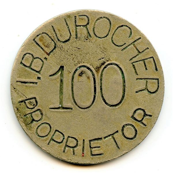 Bowman 2999Aa. BR 620A. I.B. Durocher / 100 / Proprietor // Richelieu / 100 / Hotel (large letters in Proprietor), wm, Incused, 29mm,
