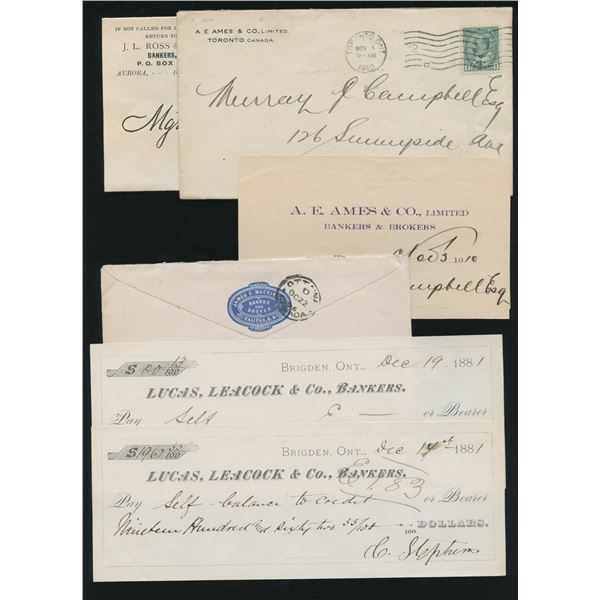 Lot includes private bank envelope and insert, James C. Mackintosh, Banker & Broker, Halifax, N.S. October 20, 1896. Nice squared circle cancell...