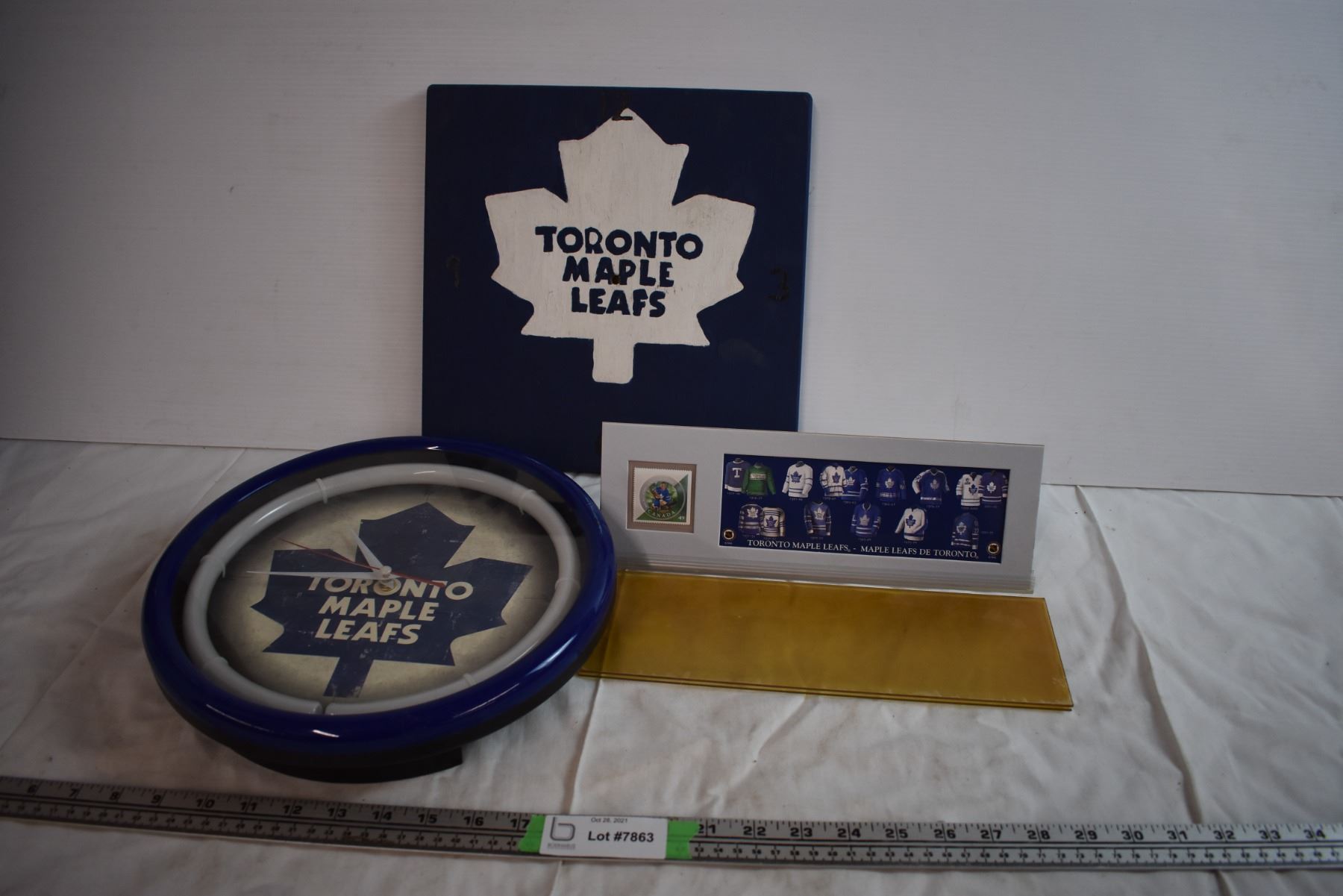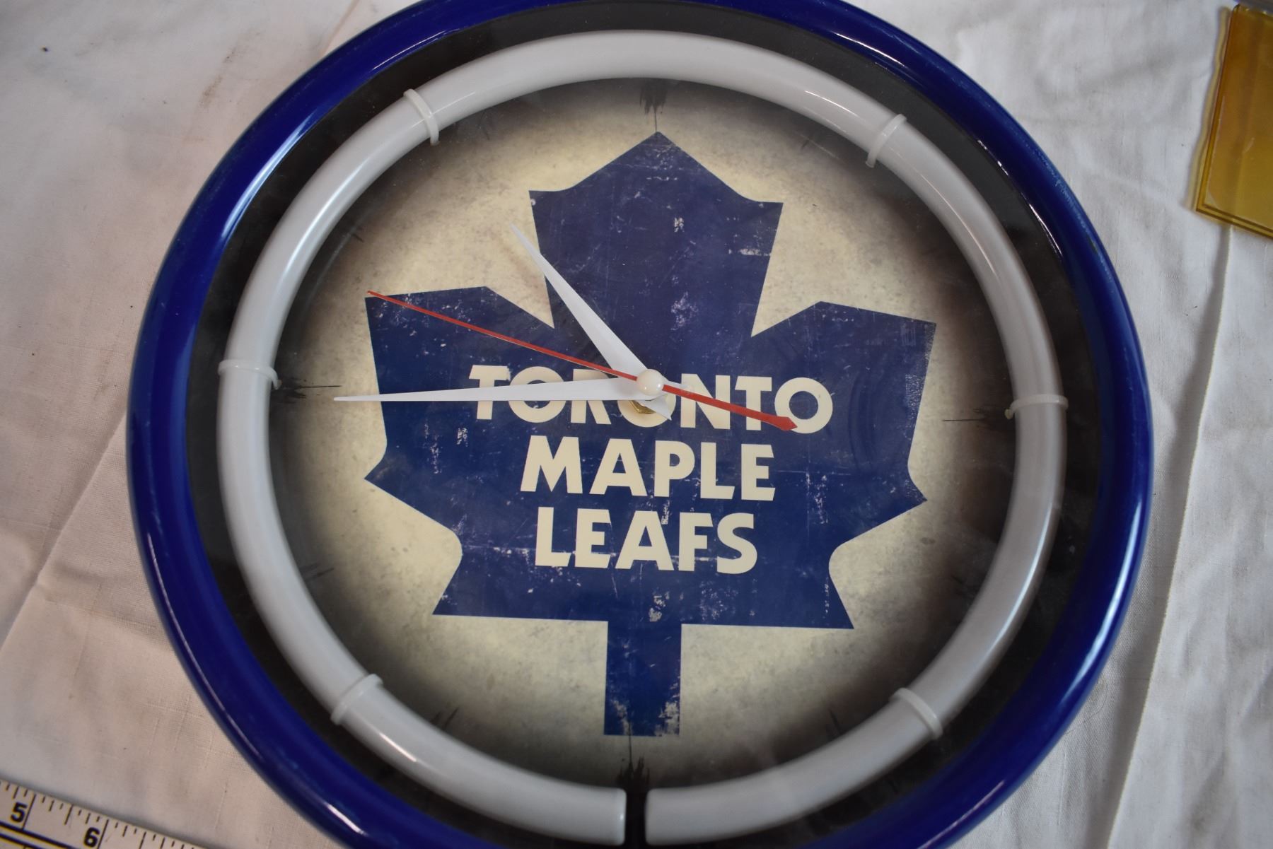 Toronto Maple Leafs Canada Post Stamp Placard and Neon Clock (Works But Missing Power Adapter)