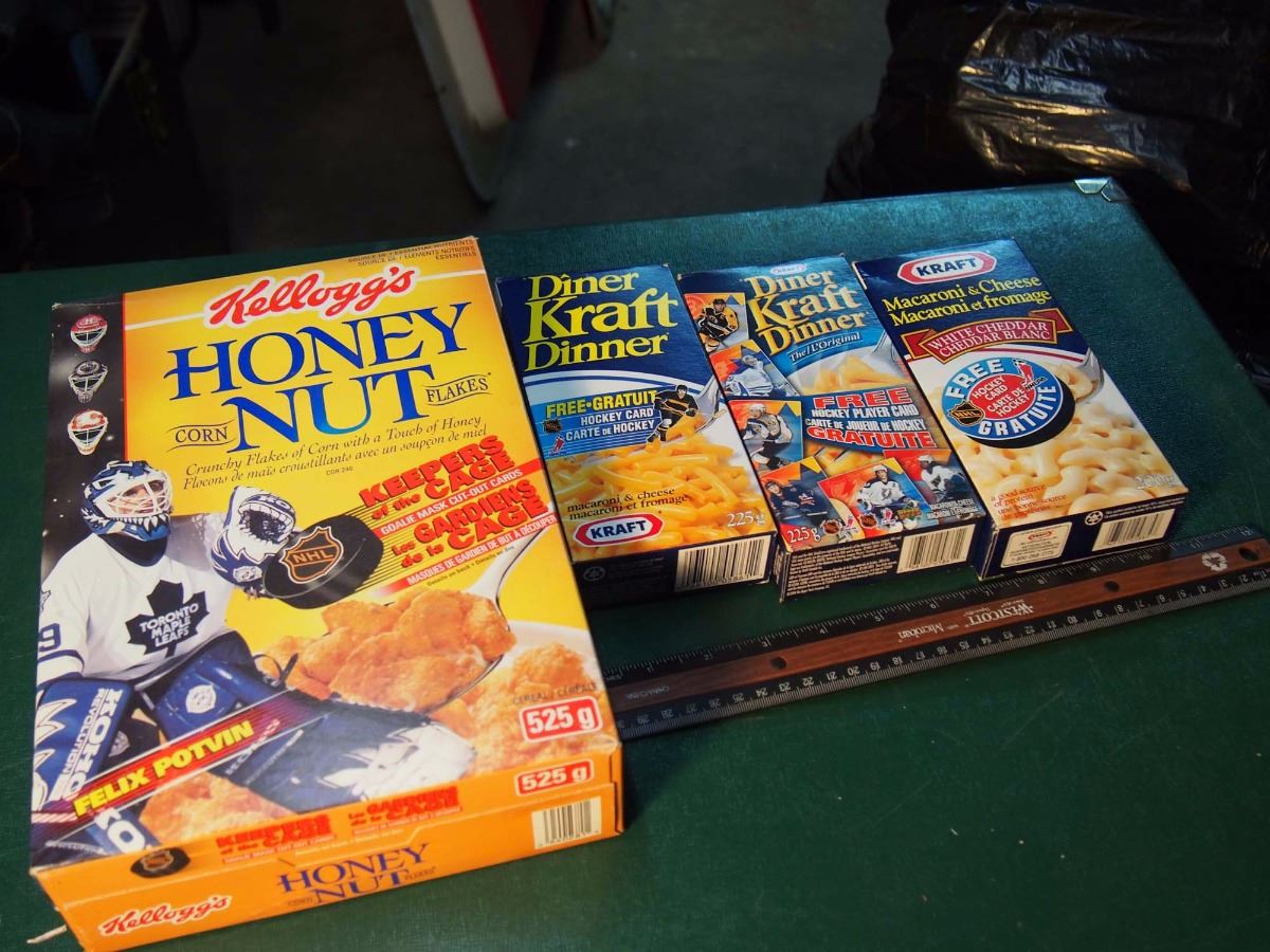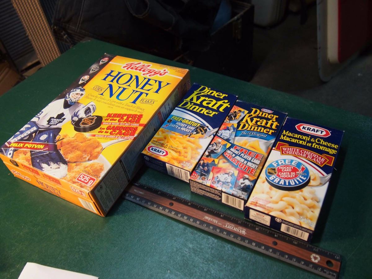 Toronto Maple Leafs' Felix Potvin - Kellogg's Cereal Box & Kraft Dinner Box, Doug Gilmour & Ed Belfour Kraft Dinner Boxes