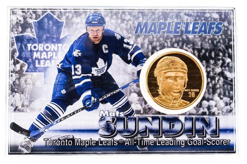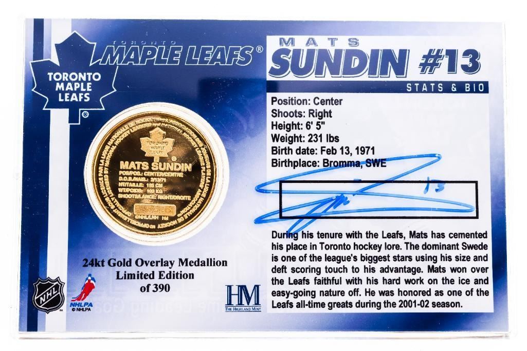 Toronto Maple Leafs - Mats Sundin All Time Goal Scorer - 24kt Gold Overlay Medallion , L.E./390 - Autographed