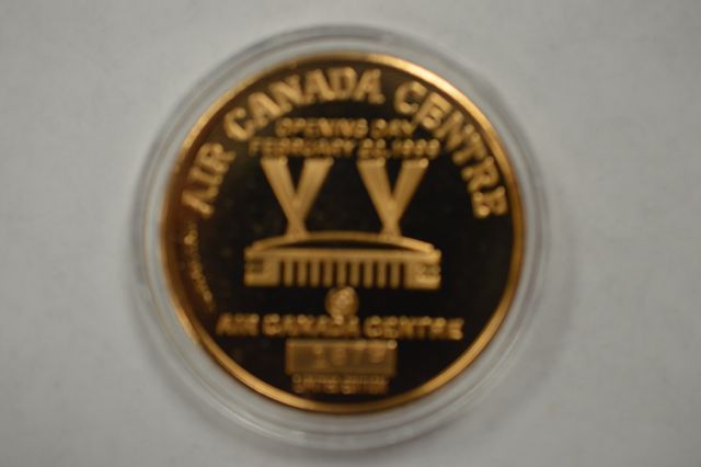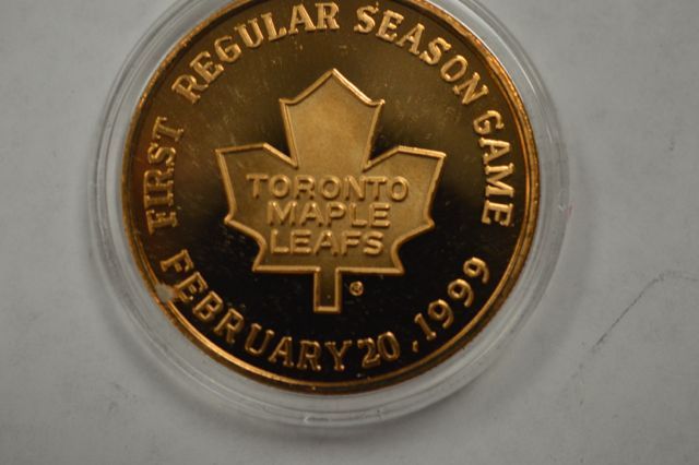 Toronto Maple Leafs Sold Out Edition 24 KT. Gold over .9999 pure sterling silver coin Commemorative Edition of The First Game at Air Canada Center February 20, 1999.