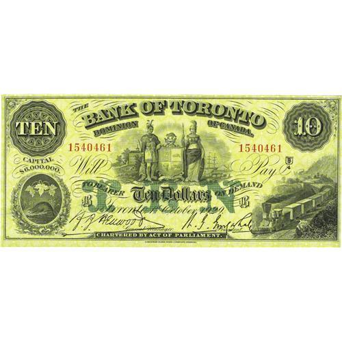 <B>Toronto, ON- Bank of Toronto</B></I> $10 Oct. 1, 1929 Ch. 715-22-44<BR>An appealing note that leads to close scrutiny uncovering a couple of folds. <B>Extremely Fine-About Uncirculated.</B></I><BR><I>From The Halton Lake Collection</B></I>