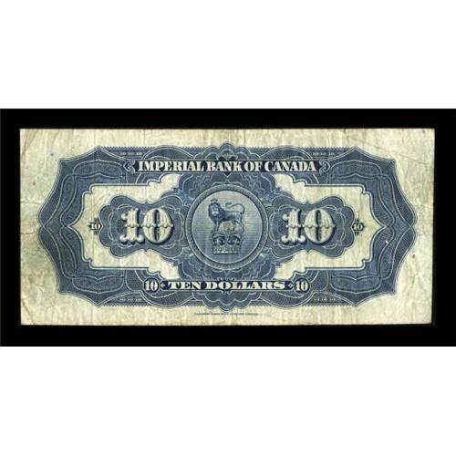 <B>Toronto, ON- Imperial Bank of Canada</B></I> $10 Nov. 1, 1933 Ch. # 375-20-04<BR> Evenly circulated <B>Fine+,</B></I> with a blue tint rather than the green of the $5. <BR><I>From The Thomas M. Flynn Collection</B></I><BR><BR><b>Shipping:</b> Coins & Currency (<a target="_blank" href="http://www.heritageauctions.com/common/shipping.php">view shipping information</a>)