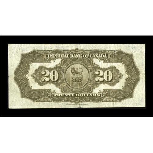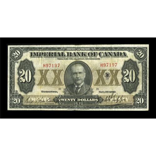 <B>Toronto, ON- Imperial Bank of Canada</B></I> $20 Nov. 1, 1923 Ch. # 375-18-10<BR> The stern visage of Peleg Howland occupies the center of this note. <B>Fine+.</B></I><BR><I>From The Thomas M. Flynn Collection</B></I><BR><BR><b>Shipping:</b> Coins & Currency (<a target="_blank" href="http://www.heritageauctions.com/common/shipping.php">view shipping information</a>)
