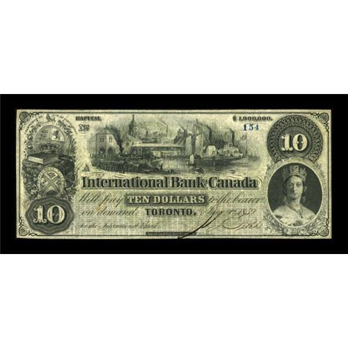<B>Toronto, ON- International Bank of Canada</B></I> $10 June 1, 1859 Ch. 380-12-02<BR> This is the first time we have handled this Charlton number on this bank. <B>Very Fine.</B></I><BR><BR><b>Shipping:</b> Coins & Currency (<a target="_blank" href="http://www.heritageauctions.com/common/shipping.php">view shipping information</a>)