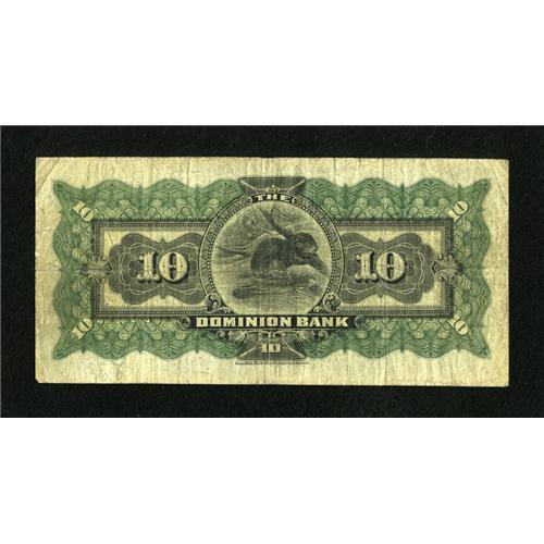 <B>Toronto, ON- The Dominion Bank</B></I> $10 Jany. 3rd 1910 Ch. 220-18-06<BR>A few margin splits and some pencil marks affect this cute "Beaver Back." <B>Very Good.</B></I><BR><BR><b>Shipping:</b> Coins & Currency (<a target="_blank" href="http://www.heritageauctions.com/common/shipping.php">view shipping information</a>)