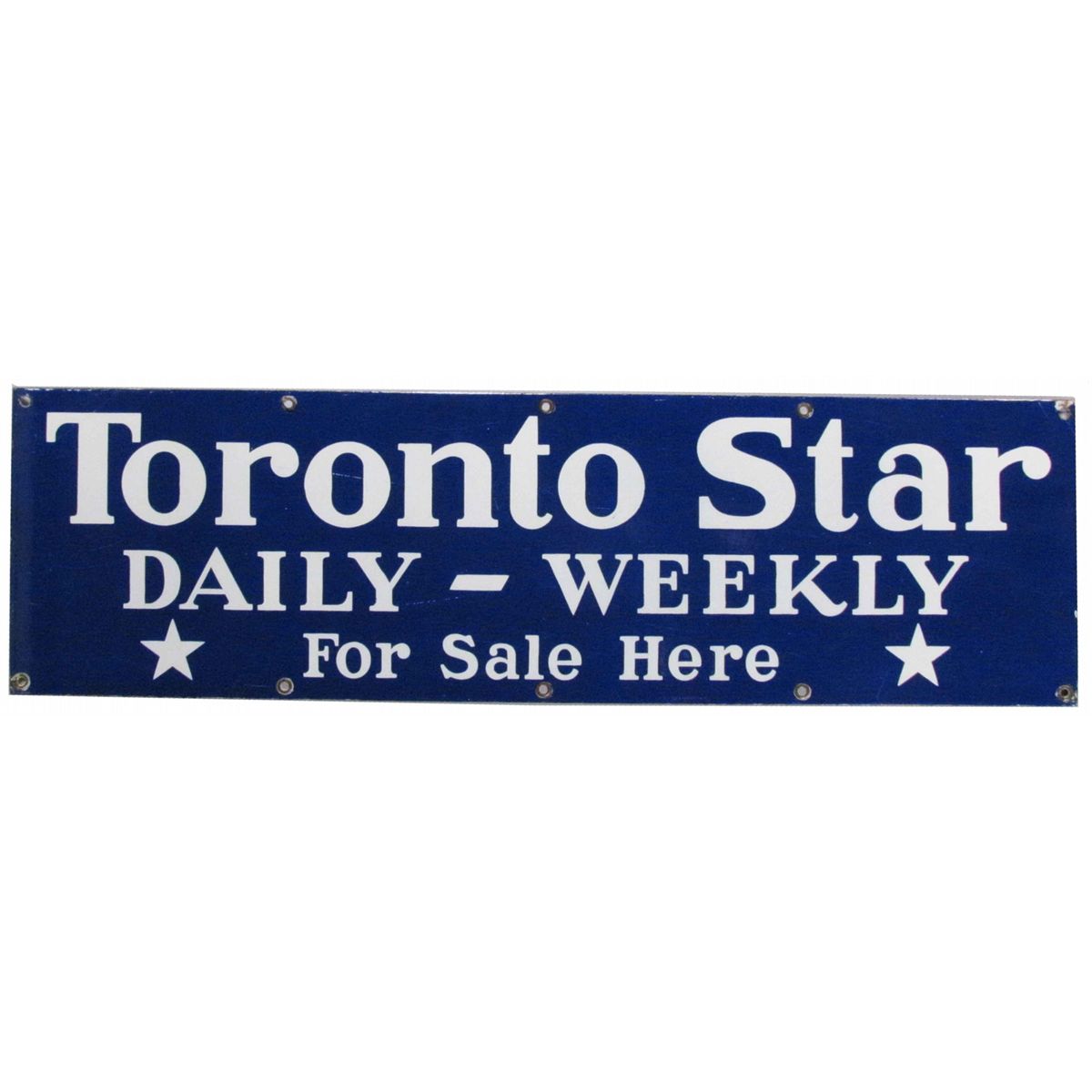 Toronto Star Daily-Weekly Heavy Porcelain Sign. Very minor paint loss at gromments only otherwise excellent condtion. 27 1/2 X 8 inches.