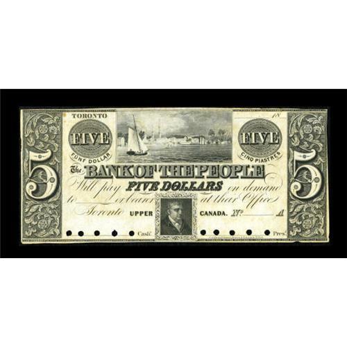 Toronto, UC- The Bank of the People $5 UNL Proof