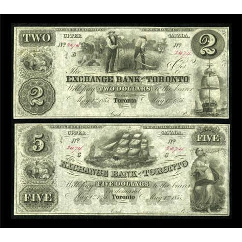 Toronto, UC- The Exchange Bank of Toronto $2, $5