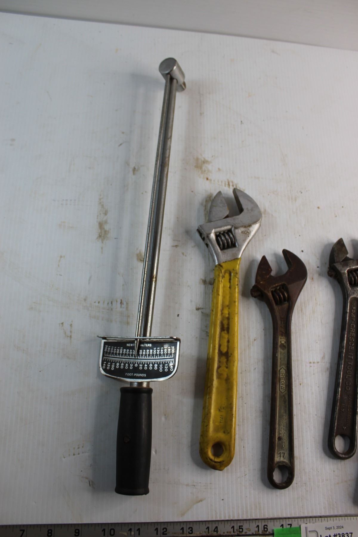 Torque Wrench, (4) Crescent Wrenches and (3) Mastercraft Adjustable Wrenches