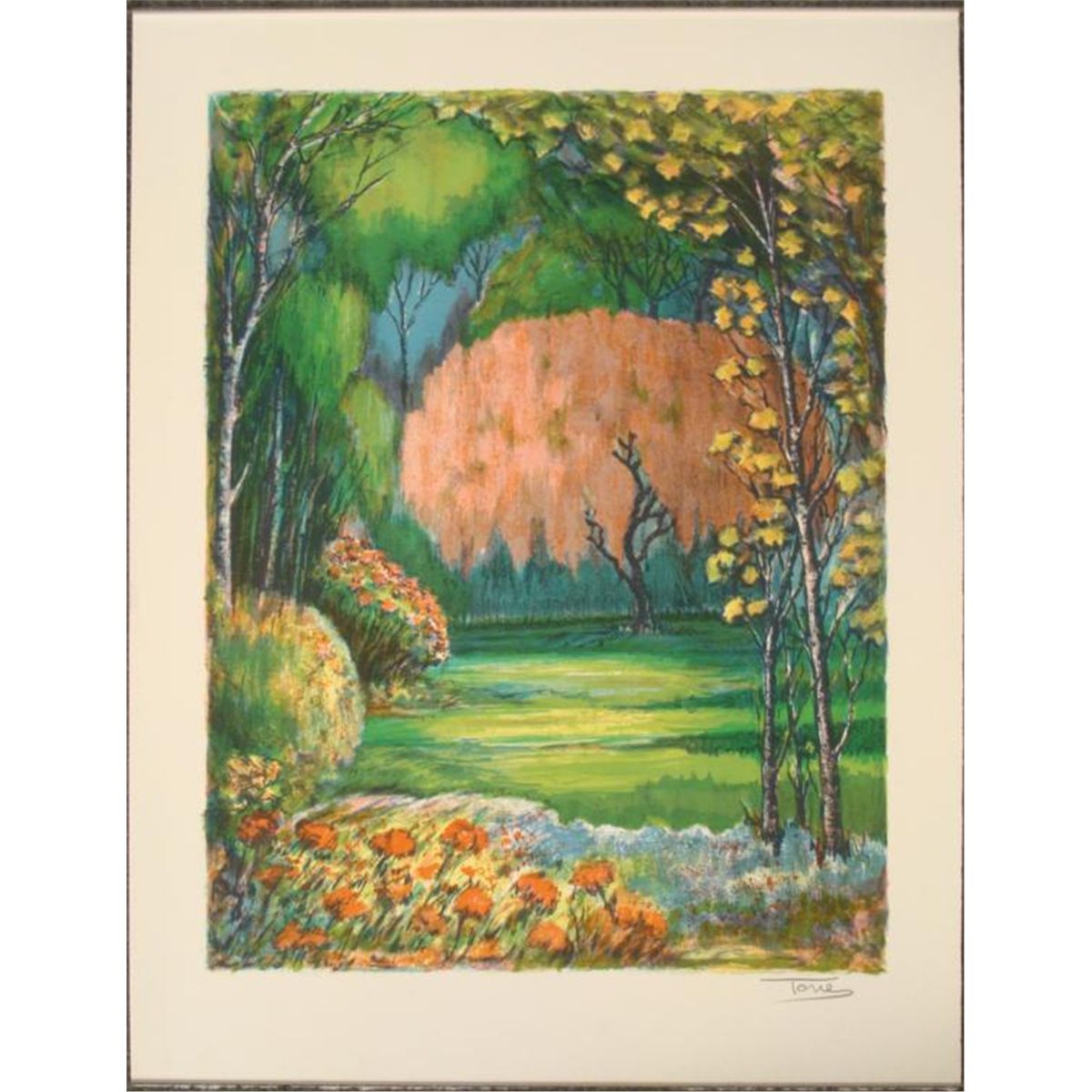 There is something magical about this vividly colored forest, especially the pink tree. * * Artist: Torrez Signature: In pencil, lower rightMedium: Print on paperSheet Size: 19 3/4 x 25 1/2 inchesCondition: Excellent