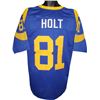Torry Holt was named to the Pro Bowl seven times and retired with the 10th most receiving yards in NFL history, including a record six consecutive seasons with 1,300 yards. He played college football at North Carolina State University, and earned consensus All-American honors. He was drafted by the St. Louis Rams in the first round of the 1999 NFL Draft, and spent the next ten years with the Rams and is remembered as one of the members of the "Greatest Show on Turf." This is an Torry Holt St. Louis Rams unsigned Blue TB unlicensed custom-prostyle jersey with twill stitched nameplate and numbers. perfect for autograph or to wear! Size XL