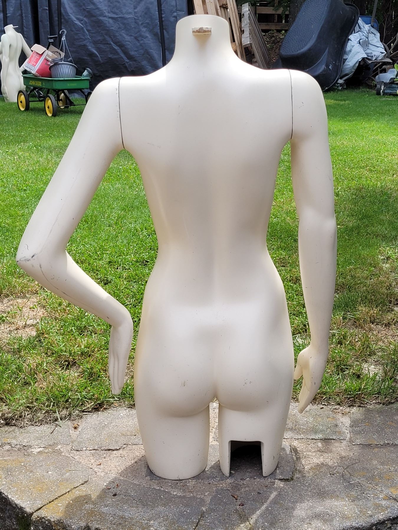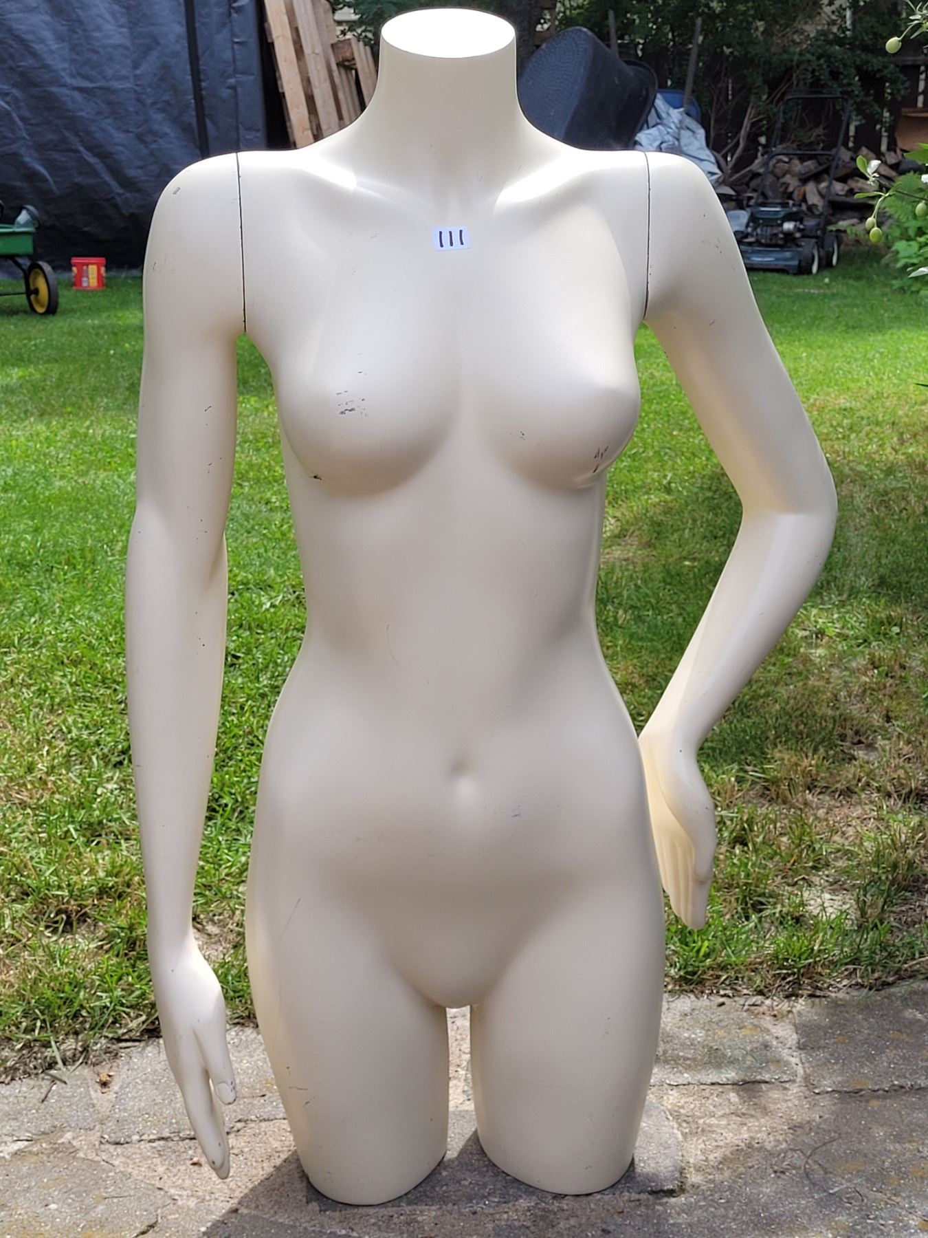 Torso mannequin with removable arms.