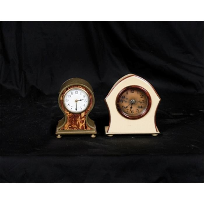 "Clock 2 Miniature Shelf Clocks, One Being Veneered w/ Tortoise Shell, One Having Celluloid Case 350-700"
