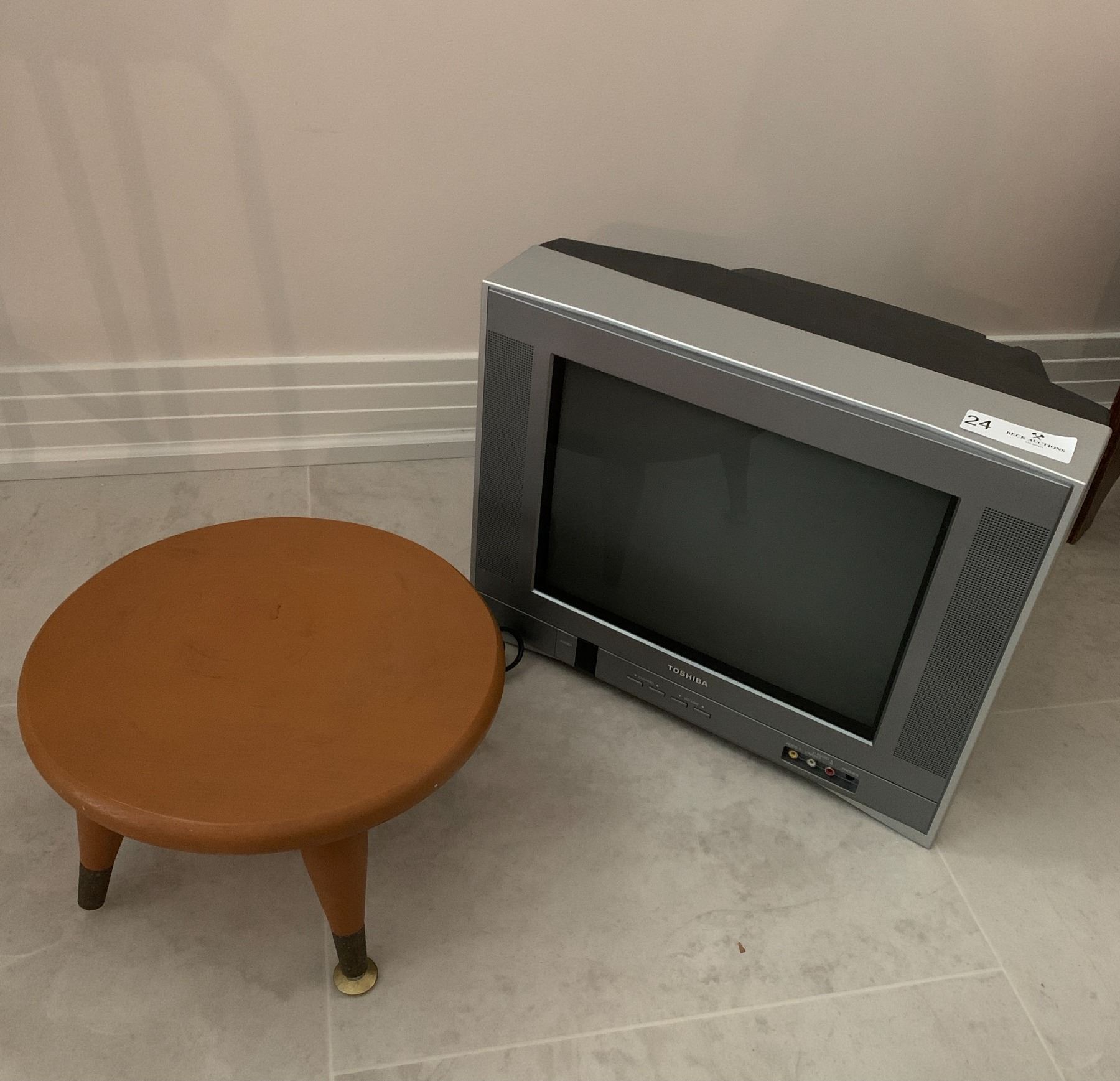 Toshiba Color TV 14" Screen Model #14AF44 w/ Small Wooden Stool