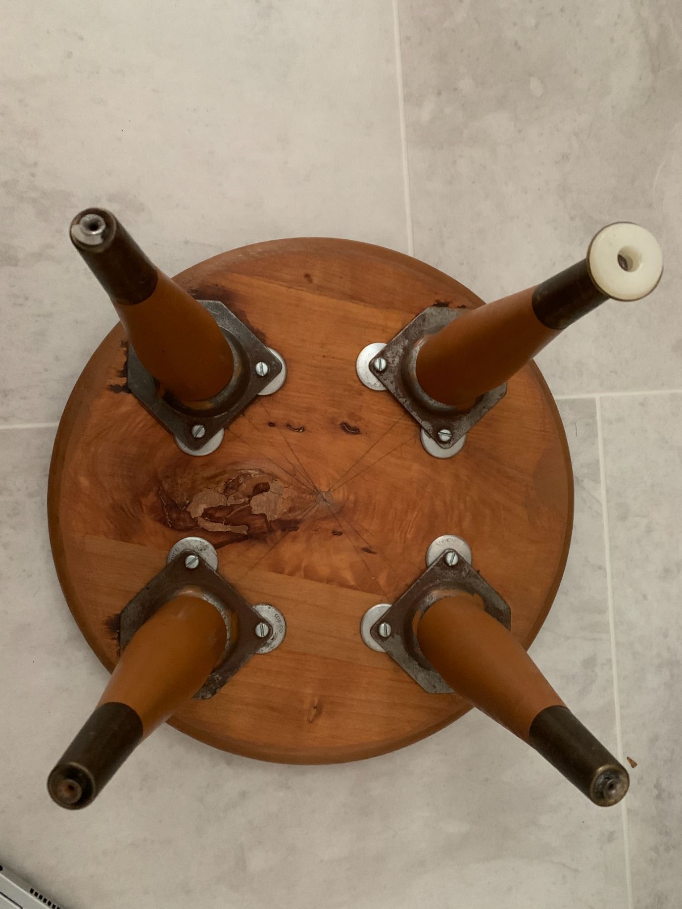 Stool wobbles; missing the end pieces on the bottom of 3 legs; as pictured
