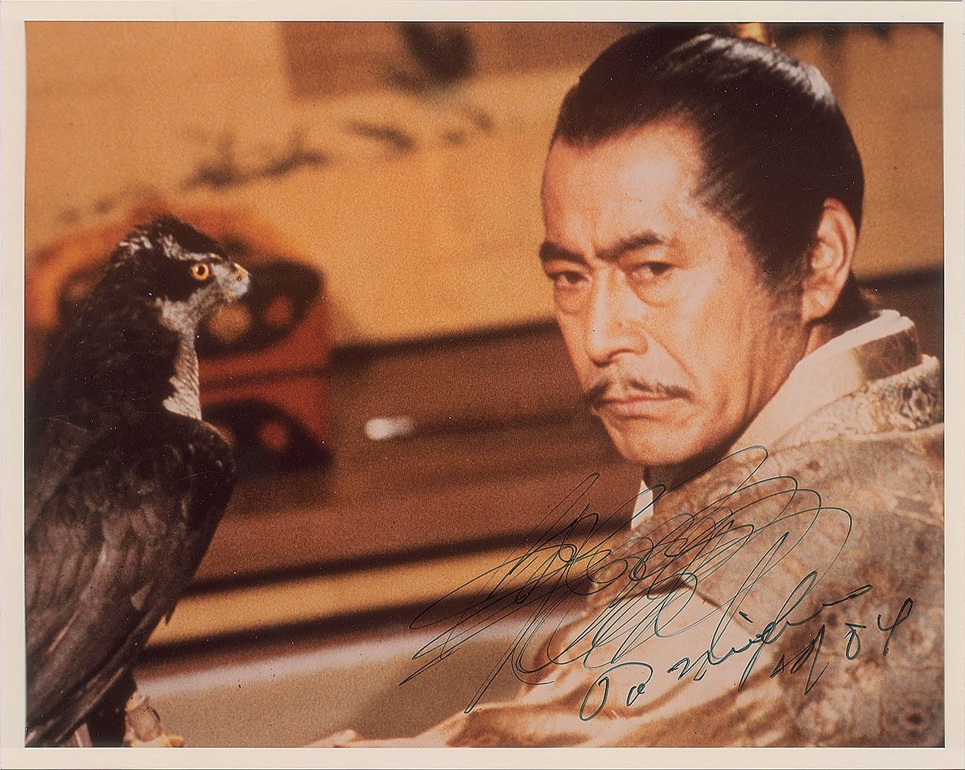 Color glossy 10 x 8 photo of Mifune as Lord Yoshi Toranaga from the miniseries Shogun, signed in black felt tip, and again below in print, “T. Mifune, 1984." In fine condition.