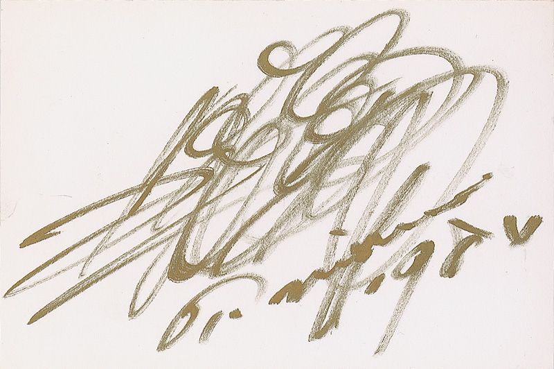 Elaborate gold ink signature on an off-white 5 x 3 card, signed again in print below, “T. Mifune 1984.” In fine condition.