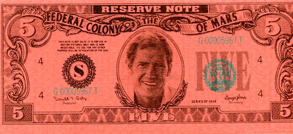 Prop currency bill screen used in the film "Total Recall". This item comes with a certificate of authenticity guaranteed for the life of the piece.