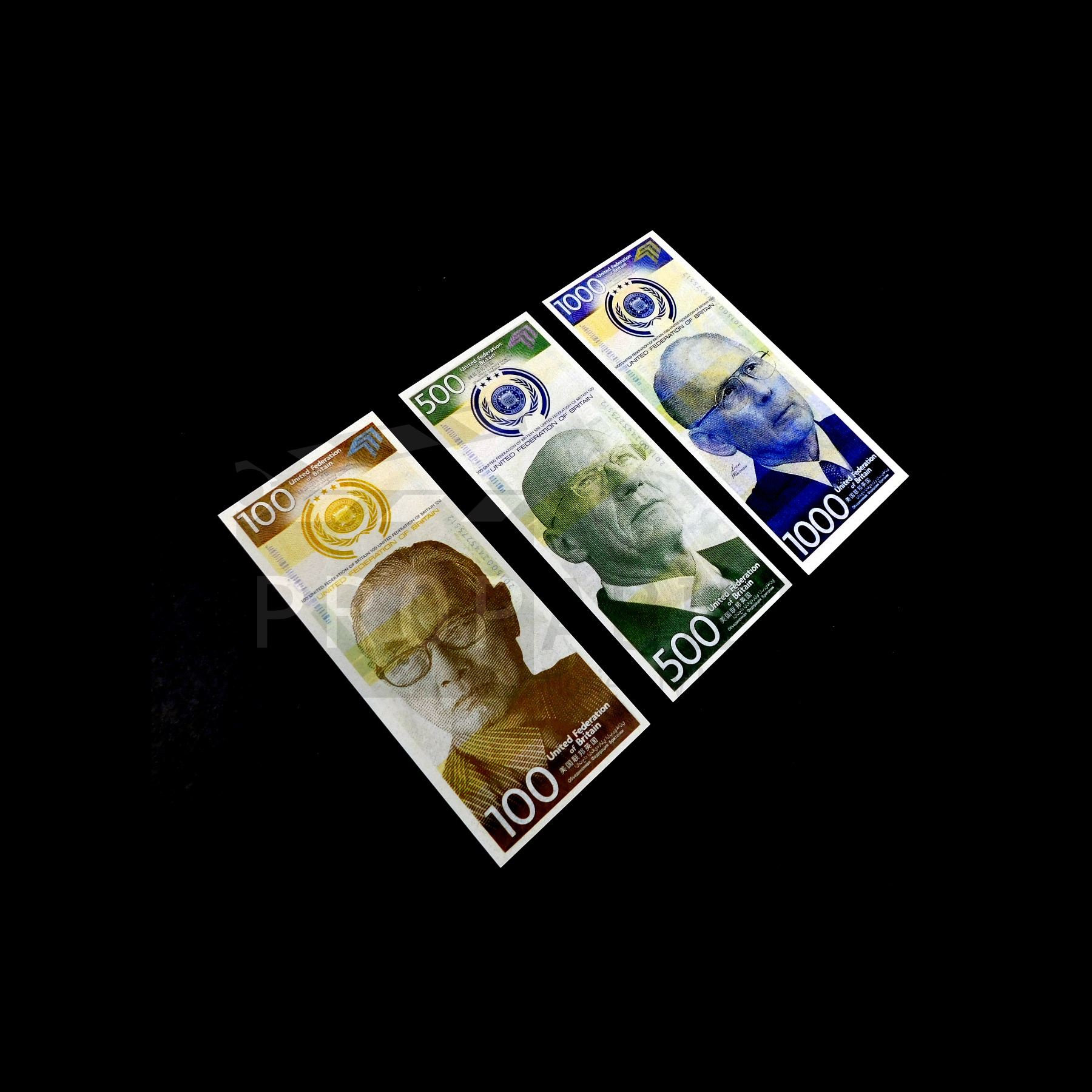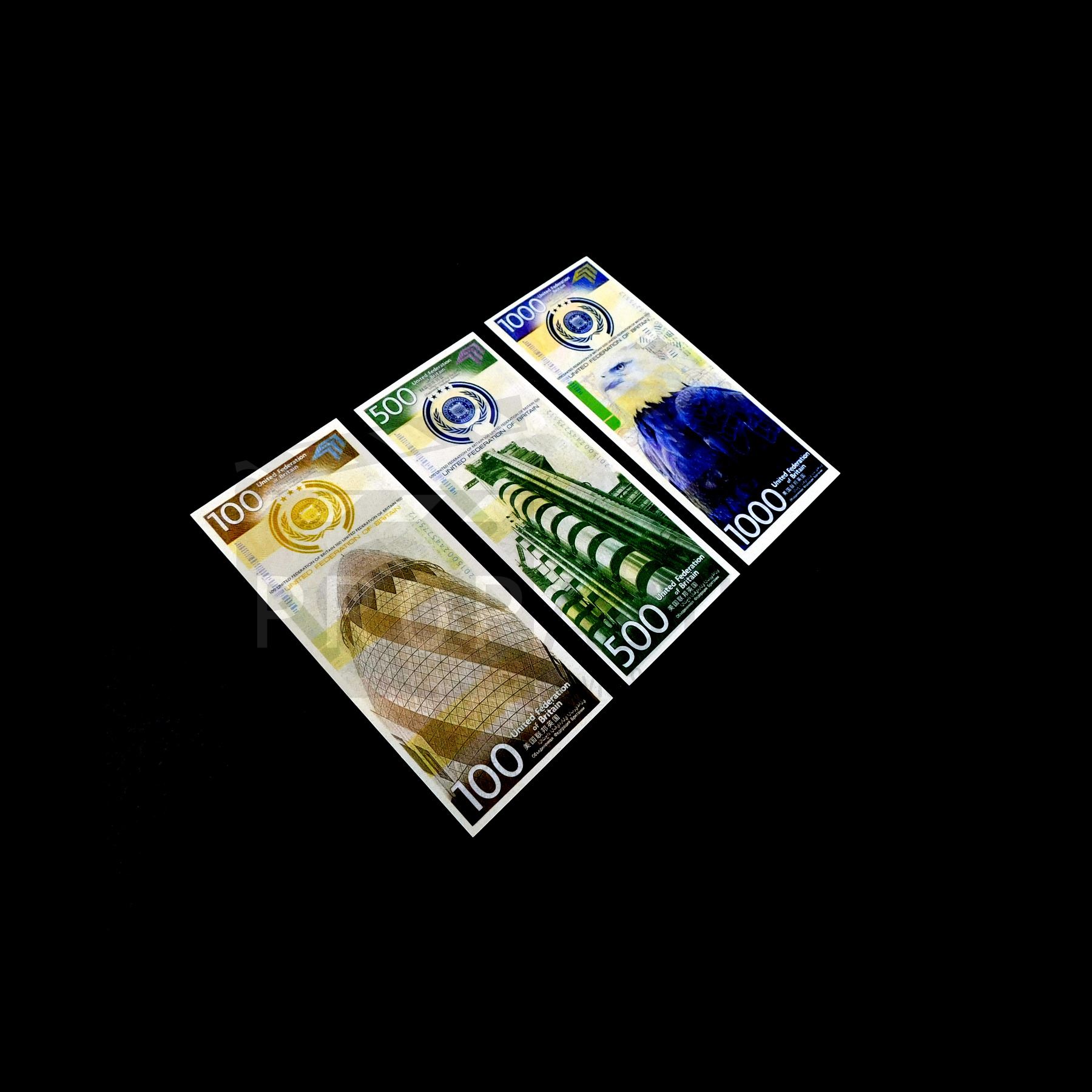 This set of bills was acquired by the production for use in 'Total Recall' (Sony, 2012).