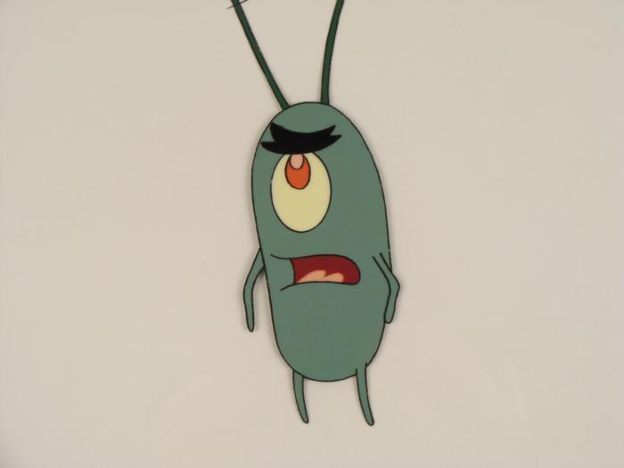 This original animation cel is from the Nickelodeon TV show SpongeBob Squarepants. The story takes place under the deep blue sea in Bikini Bottom, where SpongeBob resides. SpongeBob, who is a yellow, porous sponge, is your typical happy-go-lucky character, as he is always cheerful and enjoys making people laugh. Patrick Star, SpongeBob's neighbor who is a starfish, is your average children's show idiot, as he boasts knowing nothing and is often getting himself into ridiculous situations. Between the homes of these two lies the home of the miserable Squidward, a squid, who is known for being grouchy and playing tricks on SpongeBob and Patrick. Both SpongeBob and Squidward work at the Krusty Krab, a fast food business run by the greedy money-loving Mr. Krabs, a crab, the arch rival of the evil, possibly misunderstood, Plankton. Another neighbor, Sandy Cheeks, an athletic squirrel who normally wears an astronaut's space suit, was introduced in "Tea at the Treedome." She spends most of her time inventing and experimenting. Hey man, totally not cool... What's your deal?Original Production Animated Cel Overall Size of Cel: 10 1/2" x 12 1/2" Excellent ConditionThis is an original hand-painted cel set-up used in the production of an episode of "SpongeBob SquarePants." Each one-of-a-kind set-up represents a slight change in position of the characters. When individually photographed and projected in rapid succession, the images appear to move.